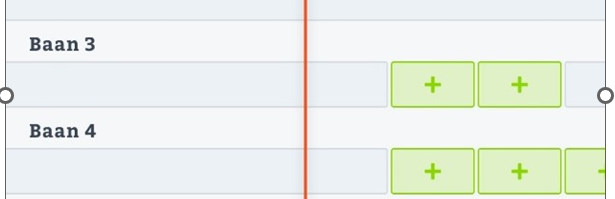 - Klik dan op Baan reserveren links boven Je ziet de banen 1 t/m 4 staan. Bij een groen blokje + kun je een baan reserveren.